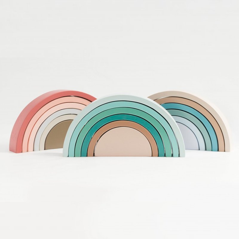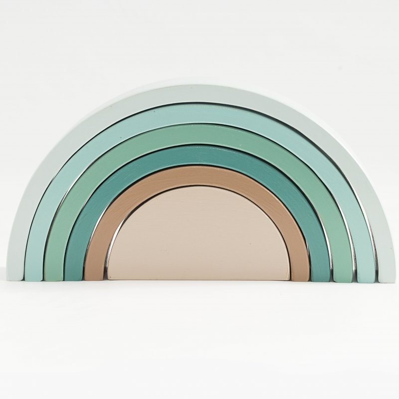 Y tantas otras cosas por descubrir con el ARCOÍRIS DE 6 PIEZAS. Sumergidos en la simpleza del arcoíris nos adentramos a un mundo mágico, descubriendo un amplio abanico de posibilidades por su gran versatilidad, dado que sus piezas pueden ser apiladas, ordenadas por tamaño, alineadas, y con ellas construir innumerables escenarios de mayor tamaño que recreen historias de la vida real (pueden ser puentes o túneles para los autos, torres, montañas, casas para los muñecos, laberintos de bolitas) fomentando el juego simbólico, la creatividad y la imaginación. Sus piezas pueden apoyarse desde diferentes bases otorgando la posibilidad de construir figuras tanto bi como tridimensionales, de gran altura o superficie. Fomenta la estimulación de funciones cognitivas como el uso de la lógica, la concentración, la atención, la resolución de problemas, presentándose desafíos de equilibrio y contrapesos en las construcciones. Por tener duplicadas sus piezas ofrece un plus de estimulación, pudiendo trabajar con él las simetrías, categorizar las piezas por tamaño y color. Es un producto tan versátil que se complejizará a medida que el niño crezca y desarrolle habilidades.